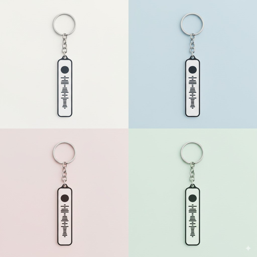 Este llavero no es solo un accesorio, es un portal a tus recuerdos y emociones. Su diseño minimalista y moderno esconde una función mágica: escanea el código con la cámara de tu app de Spotify y la canción se reproducirá al instante, creando una experiencia única cada vez que lo uses.